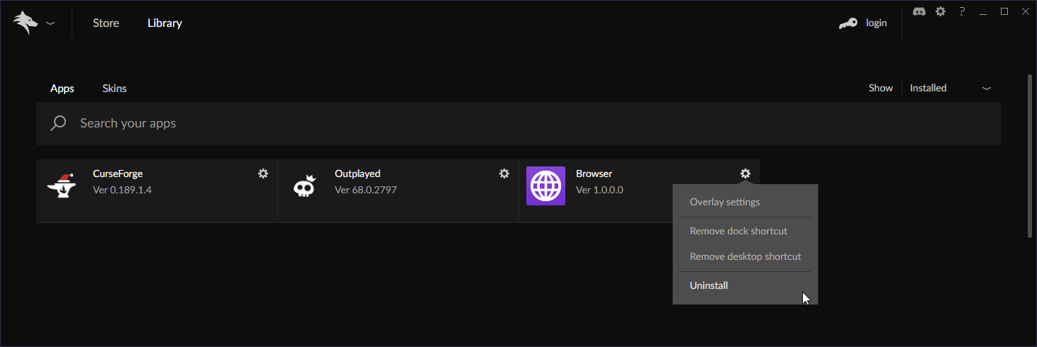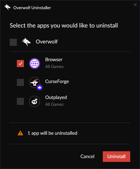 A window will appear allowing you to uninstall the selected app and optionally any other Overwolf apps.